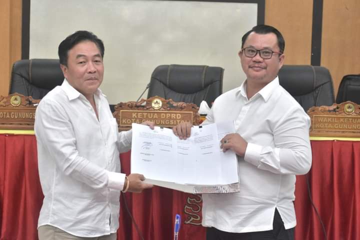 Agenda penandatanganan nota kesepakatan dilaksanakan oleh Wakil Wali Kota Gunungsitoli Sowa’a Laoli, SE, M.Si dan Ketua DPRD Kota Gunungsitoli Yanto, disaksikan oleh sejumlah Anggota Dewan dan beberapa Kepala Perangkat Daerah lingkup Pemko Gunungsitoli.