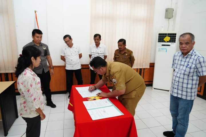 Gunungsitoli, suarainvestigasi.com –Wali Kota Gunungsitoli Sowa’a Laoli, S.E,. M.Si melaksanakan Penandatanganan Perjanjian Pinjam Pakai Tanah dan/atau Bangunan Milik Pemerintah Kota Gunungsitoli di Desa Dahana Tabaloho Kecamatan Gunungsitoli, Jumat (28/06/2024)