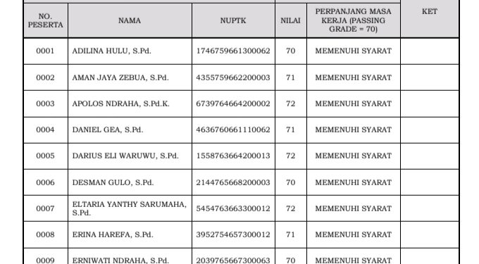 Nias, suarainvestigasi.com – Pemerintah Kabupaten Nias menyampaikan Pengumuman hasil PKG GBD Tahap II di Kantor Dinas Pendidikan Kabupaten Nias, Kamis (03/03/2022)