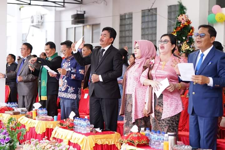 Nias Barat, suarainvestigasi.com – Bupati Nias Barat , Khenoki Waruwu menghadiri Perayaan Natal Oikumene Pemerintah Kabupaten Nias Barat Tahun 2023 yang dilaksanakan di Halaman Kantor Bupati Nias Barat, Kamis (14/12/2023).