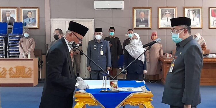 LAMPUNG UTARA, Suarainvestigasi.com- Sekretaris Daerah (Sekda) Kabupaten Lampung Utara (Lampura) Drs. Hi. Lekok, M.M., melantik dan mengambil sumpah 20 Pejabat Fungsional Pengawas Penyelenggaraan Urusan Pemerintah Daerah (PPUPD) dan Pejabat Pengawas di Lingkungan Pemkab setempat. Kegiatan pelantikan berlangsung di Ruang Siger Setdakab Lampura, Senin (15/03/2021).