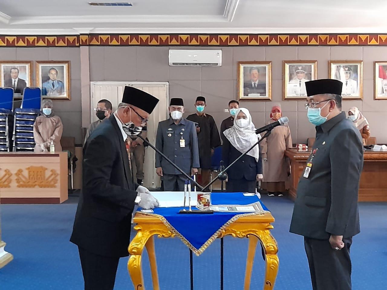 LAMPUNG UTARA, Suarainvestigasi.com- Sekretaris Daerah (Sekda) Kabupaten Lampung Utara (Lampura) Drs. Hi. Lekok, M.M., melantik dan mengambil sumpah 20 Pejabat Fungsional Pengawas Penyelenggaraan Urusan Pemerintah Daerah (PPUPD) dan Pejabat Pengawas di Lingkungan Pemkab setempat. Kegiatan pelantikan berlangsung di Ruang Siger Setdakab Lampura, Senin (15/03/2021).