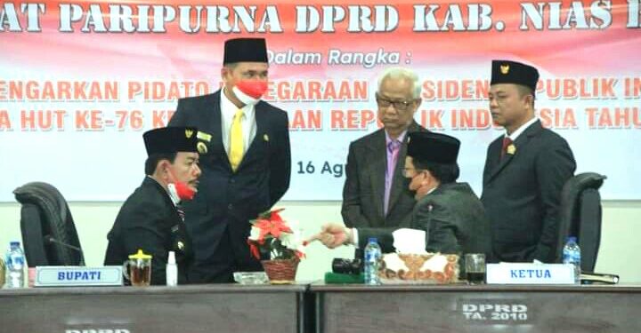 Nias Barat- Suarainvestigasi.com –Rapat Paripurna dilaksanakan dalam Rangka mendengarkan Pidato Kenegaraan Presiden Repubik Indonesia Ir. Jokowi Dodo dalam Hari Ulang Tahun ke 76 Kemerdekaan Republik Indonesia melalui Zoom. pada hari Senin (16/08/2021).