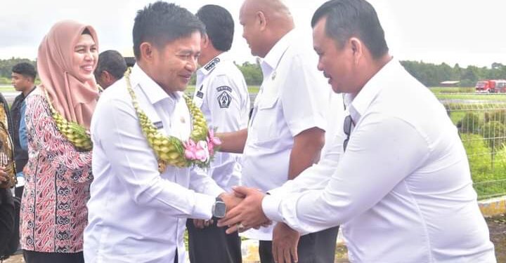 Gunungsitoli, suarainvestigasi.com –Wakil Walikota Gunungsitoli Sowa’a Laoli, SE, M.Si bersama dengan Forkopimda se-Kepulauan Nias menyambut kedatangan Pj. Gubernur Sumatera Utara DR. Hassanudin beserta rombongan di Bandar Udara Binaka Gunungsitoli, Kamis (16/11/2023).