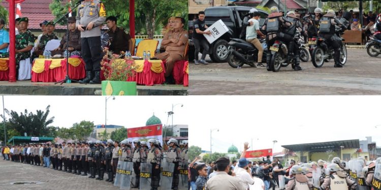 Nias Selatan, suarainvestigasi.com –Menjelang Pelaksanaan Pilkada Tahun 2024, Kepolisian Resor Nias Selatan (Polres Nisel) menggelar Sistem Simulasi Pengamanan Kota (Sispam Kota) di Lapangan Ororusa, Kelurahan Pasar Teluk Dalam, Kecamatan Teluk Dalam, Kabupaten Nias Selatan, Senin (26/08/2024).