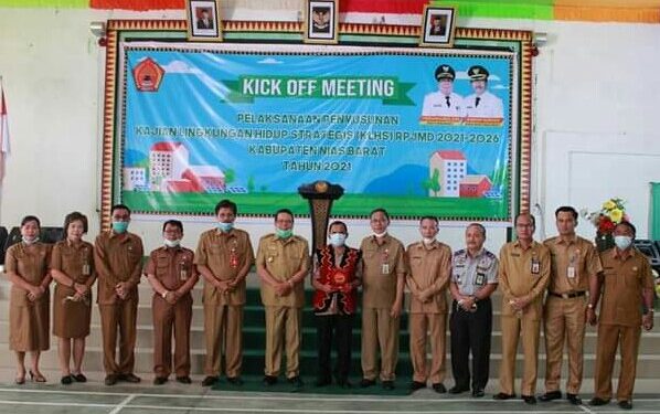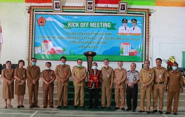NISBAR, Suarainvestigasi.com –Rapat Kick Off Meeting Pelaksanaan penyusunan kajian lingkungan Hidup Strategis (KLHS) RPJMD Tahun 2021-2026 dibuka secara Resmi Oleh Bupati Kab. Nias Barat Bpk. Faduhusi Daeli.,S.Pd.,MA.,MM Tahun 2021 Berlansung di Tokosa Hall Jln. Desa Onolimbu Kab. Nias Barat, Selasa 02/02/2021.