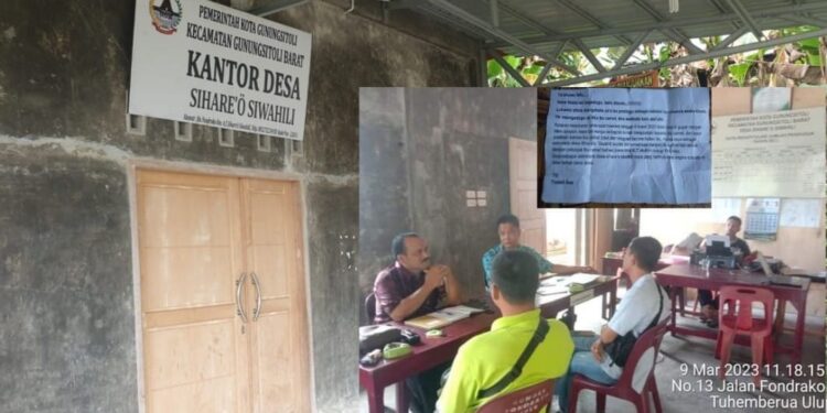 Gunungsitoli, suarainvestigasi.com – Sehubungan munculnya selebaran gelap atau surat kaleng dari masyarakat Desa Sihare’o Siwahili, Kecamatan Gunungsitoli Barat, Kota Gunungsitoli, yang berbunyi tidak ada yang bisa mengatur Sekdes dalam melaksanakan keputusan terkait (DD) Tahun Anggaran 2023 Desa Sihare’o Siwahili walaupun Wali Kota dan Camat, Kamis (10/03/2023)