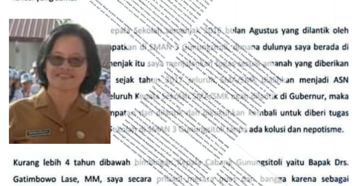 Gunungsitoli, suarainvestigasi.com – Pencopotan Mintaria Gea, S.Pd, sebagai Kepala Sekolah SMA Negeri 3 Gunungsitoli pada tanggal 20 Juli 2022 oleh Kacabdis Gunungsitoli Provinsi Sumut, Waozaro Hulu, S.Pd., MIP, menuai polemik tidak Profesional, Jumat (26/08/2022)