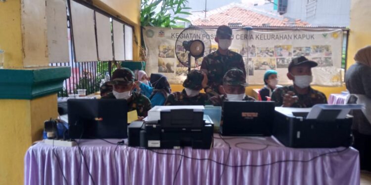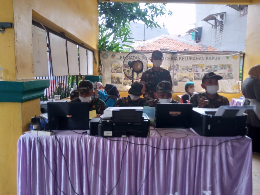 Menurut Kapten Cpl Edy Moerdoko danramil menggatakan untuk vaksin mendapatkan slot per hari 1.000 vaksin tapi di bagi 2 titik untuk kelurahan kapuk dan kelurahan cengkareng timur ucap Edy Moerdoko