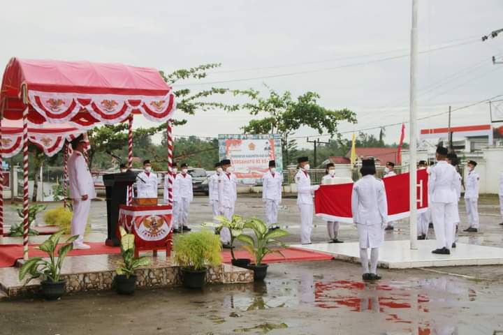 Kendatipun Kabupaten Nias Barat sedang diguyur hujan lebat, akan tetapi semangat Perjuangan dalam memperingati HUT Ke-76 Kemerdekaan Republik Indonesia tidak pernah menyurutkan niat mulai dari pagi hingga Penurunan Sang Merah Putih pada sore harinya.