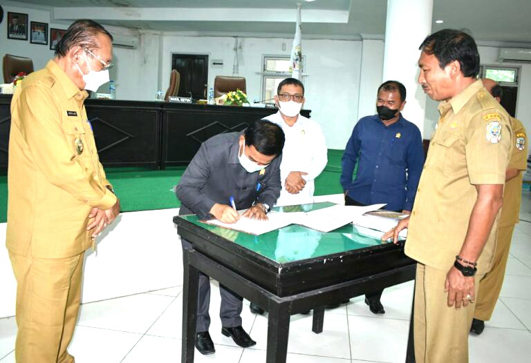 Setelah dibacakan oleh Sekwan Nota Kesepakatan KUA/PPAS Perubahan APBD Kabupaten Nias Tahun Anggaran 2021,