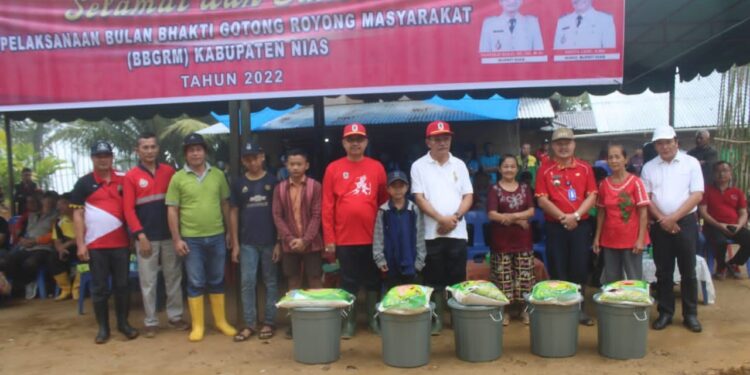 “Gotong-royong adalah nilai luhur bangsa Indonesia yang telah tumbuh, berkembang, dan menjadi karakter dalam setiap sendi kehidupan dengan tujuan agar setiap tantangan dan gejolak yang dihadapi mampu diatasi dan dilalui dengan semangat kebangsaan yang ditopang oleh nilai kegotongroyongan” terang Wakil Bupati Nias