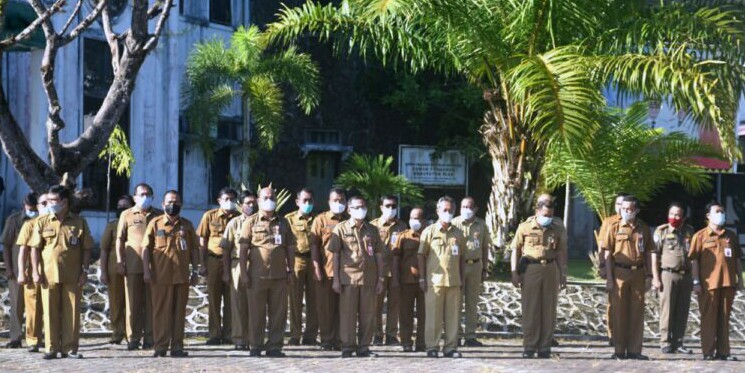 Upacara tersebut turut dihadiri oleh Pejabat Eselon II,III dan IV serta SKPD/Kepala OPD lingkup Pemkab Nias.