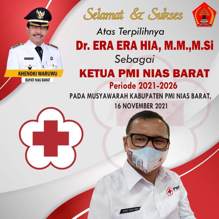 Nias Barat, suarainvestigasi.com – Selamat atas Terpilihnya Dr. Era-Era Hia, MM,M.Si, (Wakil Bupati Nias Barat) sebagai Ketua PMI Kabupaten Nias Barat.