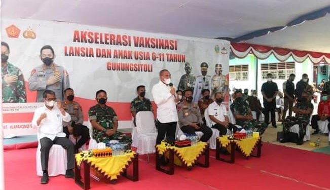 Gunungsitoli, suarainvestigasi.com – Wali Kota Gunungsitoli Ir. Lakhomizaro Zebua mendampingi Gubernur Sumatera Utara Edy Rahmayadi, Kapolda Sumatera Utara Irjen. Pol. Drs. R.Z. Panca Putra Simanjuntak, M.Si dan Pangdam I/BB Mayjen. TNI Hassanudin S.I.P., M.M saat melakukan peninjauan Vaksinasi untuk Lansia dan Anak bertempat di MAN Gunungsitoli, pada hari Kamis (17/02/2022).