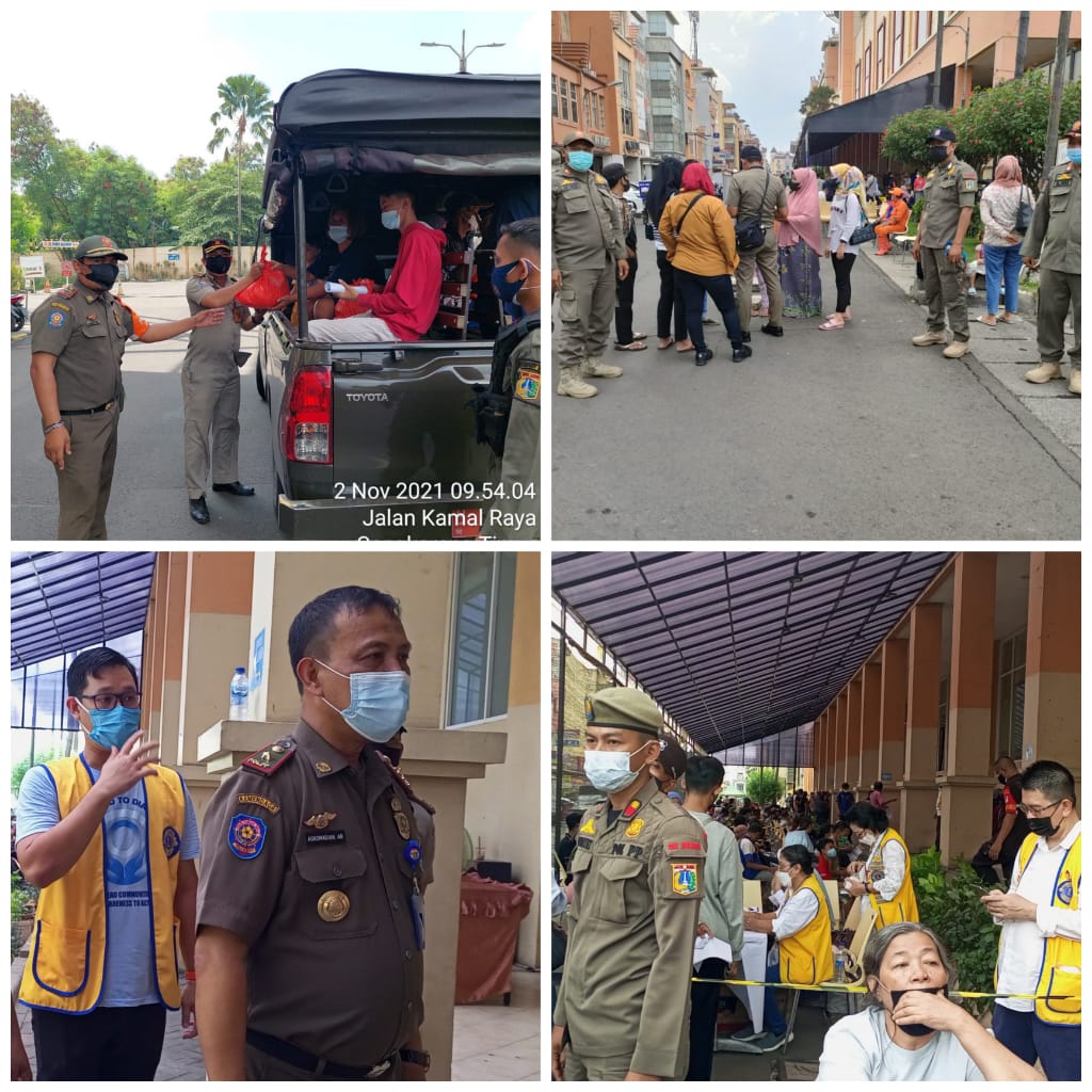Gelar Vaksininasi program 4D (Dijemput, Divaksin, Dikasih Sembako, Diantar pulang) vaksinasi Berlangsung di Halaman Mall Taman Palem ,Jl Kamal Raya , Kelurahan Cengkareng Timur, Kecamatan Cengkareng Jakarta Barat,Selasa (2/11/2021)