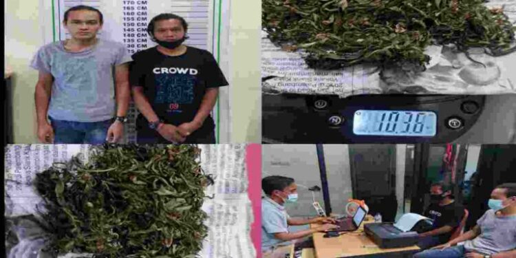 “Kemudian dilakukan pencegatan terhadap para tersangka selanjutnya dilakukan penggeledahan ditemukan barang bukti berupa 1 (satu) bungkus kertas koran berisikan daun-daun kering diduga Narkotika jenis daun ganja dengan berat keseluruhan 10.36 gram yang disimpan didalam kantong kresek warna hitam, 1 (satu) unit sepeda motor merk Honda type Scupy warna hitam”. ungkapnya.