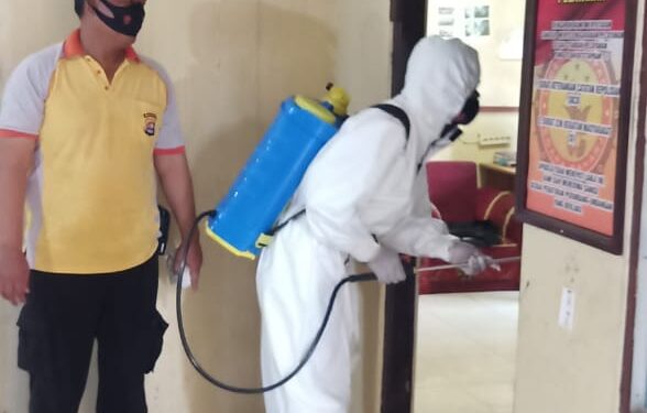 “Karena masih tingginya penyebaran virus Covid-19, maka kami selaku garda terdepan gugus tugas Covid-19 juga harus berhati-hati. Kami rutin melakukan penyemprotan ini,” kata Siahaan.