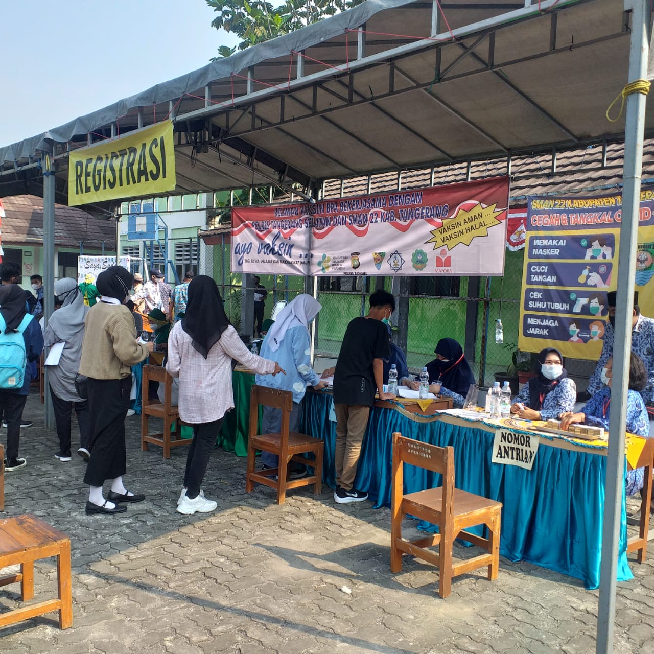 Relawan Vaksin Bumi Puspiptek Asri (BPA) bekerjasama dengan Polres Tangerang Selatan dan SMA Negeri 22 Kabupaten Tangerang, pada Selasa (17/8) melaksanakan vaksinasi yang bertempat dihalaman sekolah tersebut, vaksinasi Covid-19 ini menyasar pelajar/siswa dari SMAN 22 dan SMKN 6 kabupaten Tangerang. Selain siswa, vaksin juga diberikan kepada warga BPA.