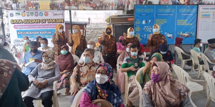 JAKARTA, Suarainvestigasi.com – Membantu mensukseskan program pemerintah dalam pencegahan penyebaran Virus Covid-19, Haji Poniman selaku RW 16 menggajak Ibu dawis dan ibu PKK serta Rt setempat untuk memberitaukan dengan adanya program vaksin lansia. Hal tersebut agar warga yang lansia untuk segera di vaksin yang berada di wikayah Pedongkelan jln Garikas Jaya ,Kapuk .cengkareng . kamis 06-05-2021