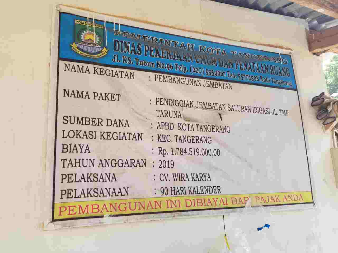 Kota Tangerang, Suarainvestigasi.com – Pekerjaan salah satu Proyek milik Pemkot Tangerang melalui Dinas.PUPR yaitu Peninggian jembatan di jalanTMP Taruna Kota Tangerang diprediksi akan melewati batas waktu yang diberikan PUPR.