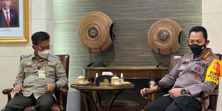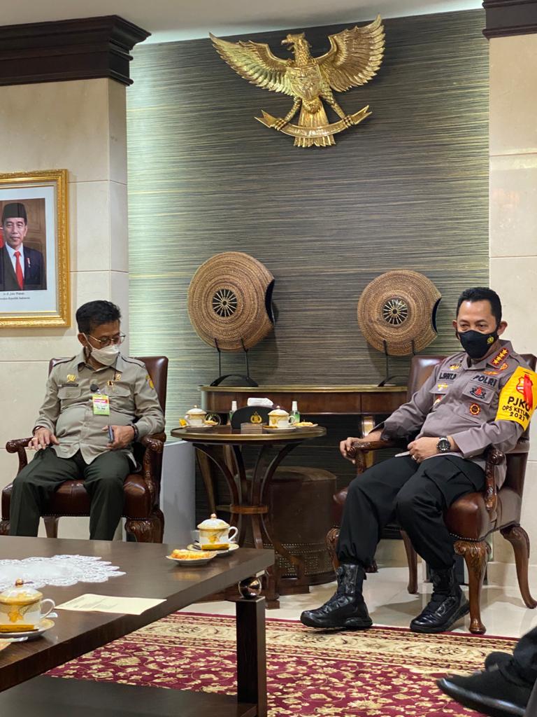 JAKARTA,Suarainvestigasi.com- Kapolri Jenderal Listyo Sigit Prabowo menerima audiensi Menteri Pertanian Syahrul Yasin Limpo bersama jajaran di Ruang Rapat Kapolri, Mabes Polri, Jakarta, Senin (17/5).
