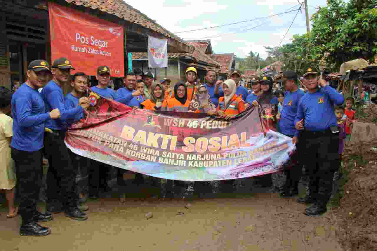 Ketua Angkatan 46 WSH Polda Banten Ipda Iwan Wahyudi mengatakan, lokasi itu merupakan lokasi yang terkena dampak banjir cukup parah. Akses menuju ke desa itu, kata Iwan, terbilang sulit akibat banjir bandang.