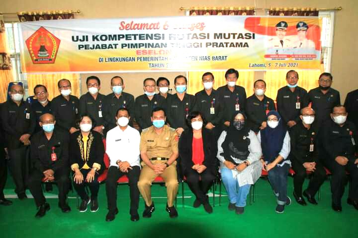Nias Barat, suarainvestigasi.com –Wakil Bupati Nias Barat Dr. Era-Era Hia,MM,M.Si didampingi Sekretaris Daerah Nias Barat Dr, Prof. Fakhili Gulö,M.Sc membuka Pelaksanaan Uji Kompetensi Rotasi Mutasi Pejabat Pimpinan Tinggi Pratama Eselon II-B, yang dilaksanakan bertempat di Ruang Afo Bappeda Kabupaten Nias Barat, pada hari Senin (05/07/2021).