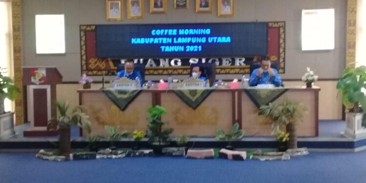 “Kita memulai semangat baru sebagai ASN. Tadi pagi atas pemerintah pimpinan kita melakukan sidak yang dibagi menjadi tiga tim dan masing-masing dipimpin asisten I, II, dan III. Kepada jajaran yg ada bahwa jam kerja kita sudah kembali seperti semula dari 7.30 sampai 15.30 WIB, untuk Jumat sampai jam 16.00 WIB,” kata Asisten I saat Coffee Morning bersama seluruh pejabat eselon II dan III Pemkab Lampura di Ruang Siger Setdakab, Senin (17/05/2021).