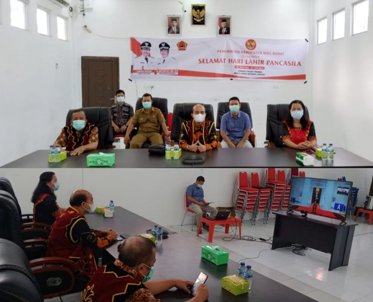 Nias Barat, suarainvestigasi.com –Pemerintah Kabupaten (Pemkab) Nias Barat ikut Peringatan Hari Lahir Pancasila 2021, secara Virtual Reality. Acara dilaksanakan di Ruang Aekhula, Kantor Bupati Nias Barat, Jl. Onolimbu pada hari Selasa (01/06/2021).