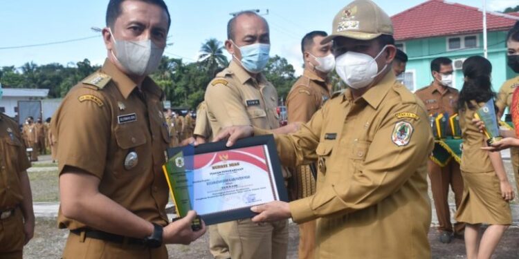“Pemberian penghargaan ini adalah bentuk apresiasi atau evaluasi kinerja Perangkat Daerah di lingkungan Pemerintah Kabupaten Nias sepanjang tahun 2020”.Ucap Bupati Nias.