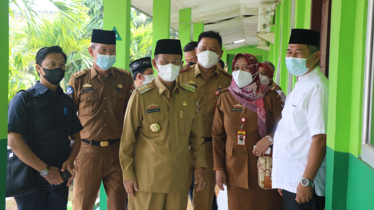 Lampung Utara, Suarainvestigasi.com – Bupati Lampung Utara H. Budi Utomo, S.E., M.M., meninjau langsung hari pertama Pelaksanaan Pembelajaran Tatap Muka Terbatas Tahun Ajaran 2021-2022 di SMPN 7 Kotabumi, Senin (30/08/2021).