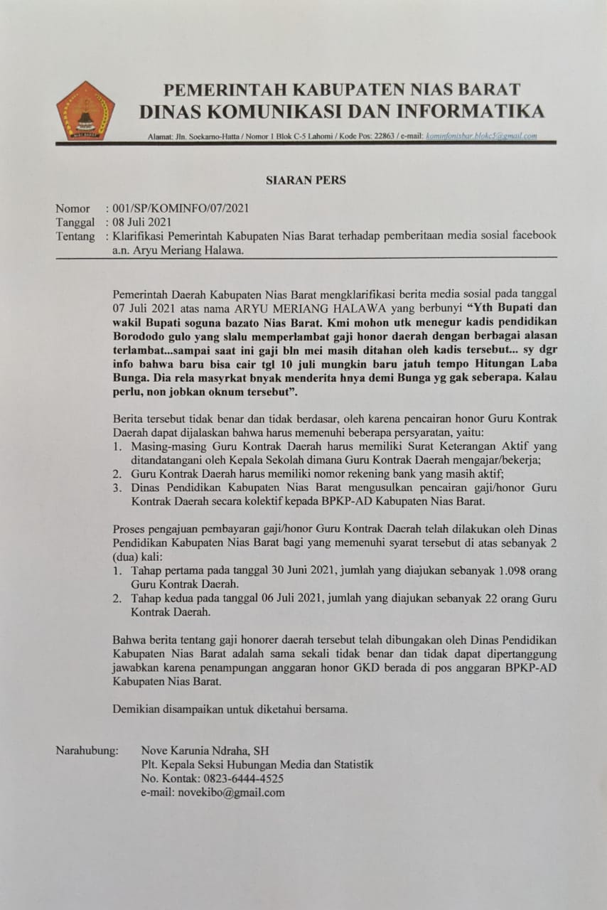 Nias Barat, suarainvestigasi.com –Kepada Dinas Pendidikan Kabupaten Nias Barat, Borododo Gulo, Menjelaskan kepada sejumlah wartawan terkait cara pengajuan gaji Guru Honorer Daerah, di Ruang kerjanya Kantor Dinas Pendidikan Kabupaten Nias Barat pada hari (07/07/2021).