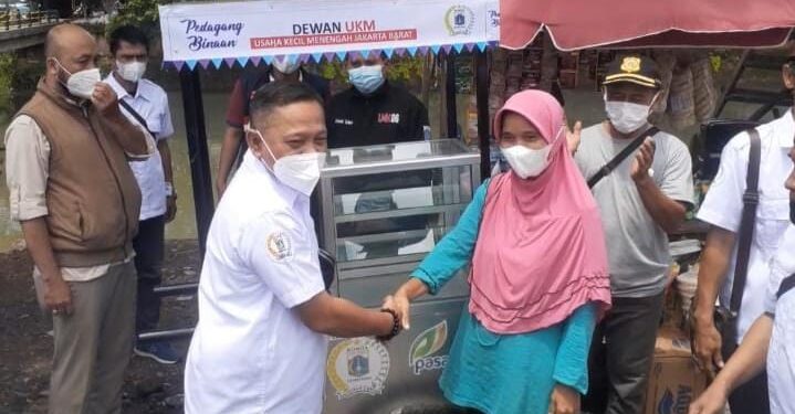 Jakarta – Suarainvestigasi.com – Dewan Usaha Kecil Menengah (UKM) Jakarta Barat (Jakbar) menyerahkan bantuan gerobak kepada pedagang Pasar Kemiri, Kembangan Utara, Kembangan, Jakarta Barat, Minggu (23/1/2022). Ini merupakan salah satu program kerja Dewan Kota Jakarta Barat.