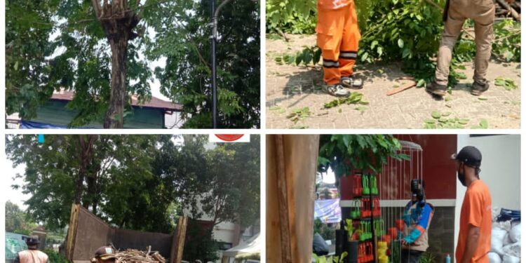 Penebangan dahan dan daun mulai berjalan, untuk merapikan dahan yang daunya sudah lebat Tim PPSU sudah siap kerja cepat untuk memotong jadi kecil dan di pisahin dari daunnya biar kerjaan cepat selesai dan bisa langsung di rapihin