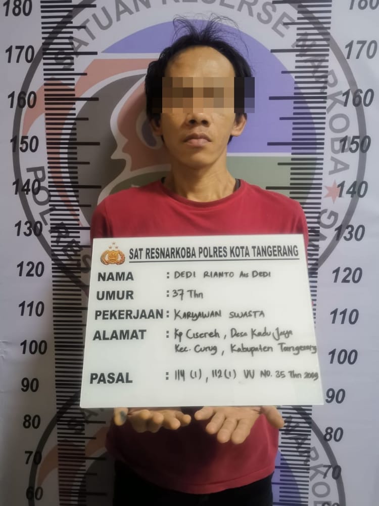 TANGERANG, Suarainvestigasi.com-Jajaran Satuan Reserse Narkoba Polresta Tangerang berhasil amankan seorang pria berinisial DR (36).Tersangka diamankan polisi di pinggir jalan tepatnya di Jalan Raya Sukabakti, Desa Sukabakti, Kecamatan Curug, Kabupaten Tangerang, minggu (14/2/2021).