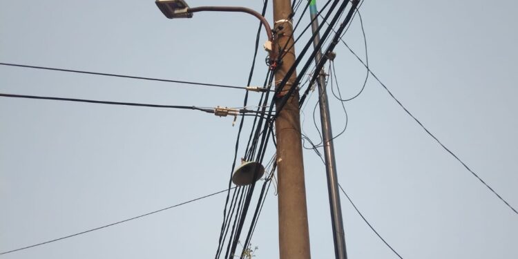 Kota Tangerang, Suarainvestigasi.com – Diduga belum miliki Izin Rekomendasi PUPR Tata Ruang Kota Tangerang, Tiang PT. Link Net First Media dipertanyakan Izinnya.