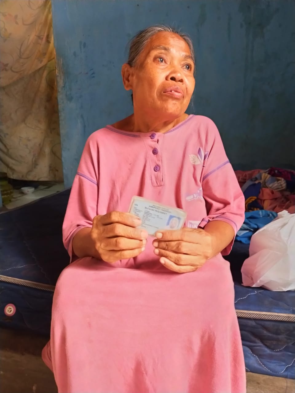 “Baru kemarin kartu keluarga dan KTP diminta pak RW setelah pak lurah dan pak dandim serta bu camat menengok ke sini. Sebelumnya belum pernah dapat bantuan apa-apa. Baru kemarin sembako dan uang dari pak dandim,” jelasnya.