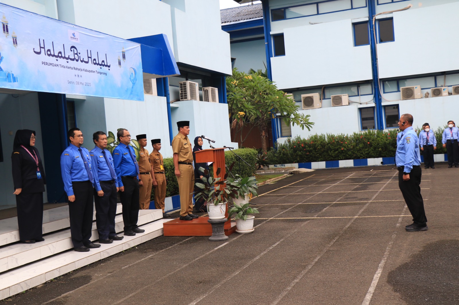 “Minal aidzin walfaizin, mohon maaf lahir dan batin kepada seluruh karyawan di lingkungan Perumdam TKR. Ingat kewajiban kita sebagai karyawan Perumdam TKR melayani masyarakat dalam memenuhi bersih di wilayah Kabupaten Tangerang dan sekitarnya,” kata Sekda saat menghadiri apel pagi yang dirangkaikan dengan halal bihalal. Acara tersebut digelar di Halaman Kantor Perumdam TKR, Senin, (8/05/23).