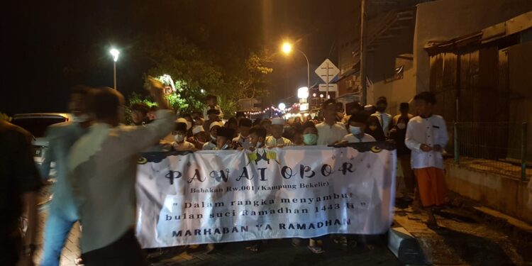 TANGERANG, – Suarainvestigasi.com – Jelang bulan suci Ramadhan 1443 Hijriah yang jatuh pada tanggal 3 April 2022, warga RW 01, Kampung Bekelir, Babakan, Kota Tangerang gelar pawai obor keliling kampung.