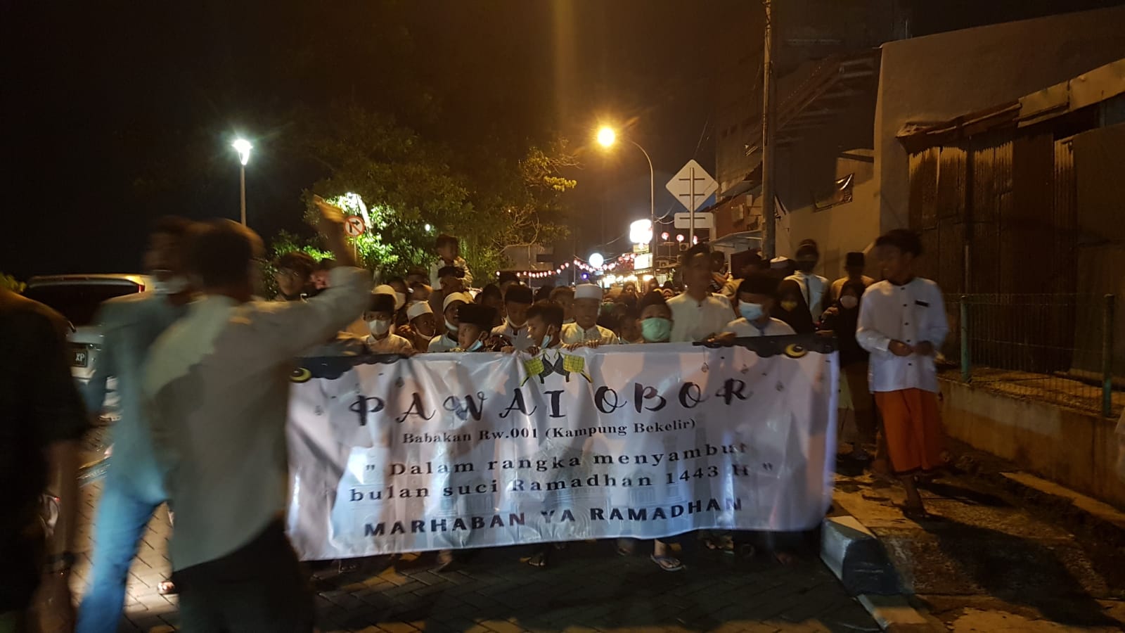 Acara pawai obor di ikuti ratusan warga RW 01 Kampung Bekelir, kegiatan tersebut memang sudah menjadi tradisi setiap tahun sekali menjelang bulan suci ramadhan. (1/4/2022)
