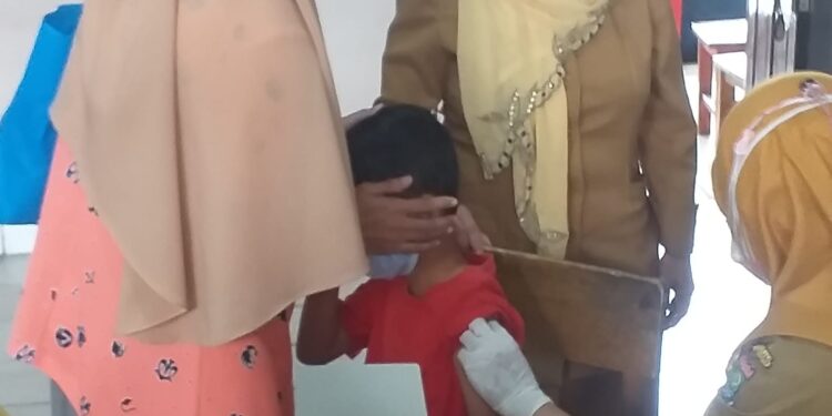 Kab.Tangerang, Suarainvestigasi.com – SDN Bencongan 1 Kecamatan Kelapa Dua kabupaten Tangerang, Banten melaksanakan vaksinasi Covid-19 bagi siswa usia 6 s/d 12 tahun disalah satu ruang kelas sekolah tersebut, terlihat siswa/siswi dengan menggunakan seragam sekolah datang kesekolah sejak pagi hari mengantri giliran untuk mendapatkan vaksinasi. Selain itu, siswa juga datang dengan didampingi orang tua siswa masing-masing.
