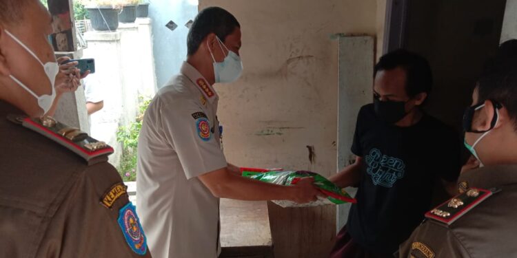 Sosialisasikan PPKM Darurat, Satpol PP Kota Tangerang Bagikan Bansos Secara Inovatif Serta Humanis