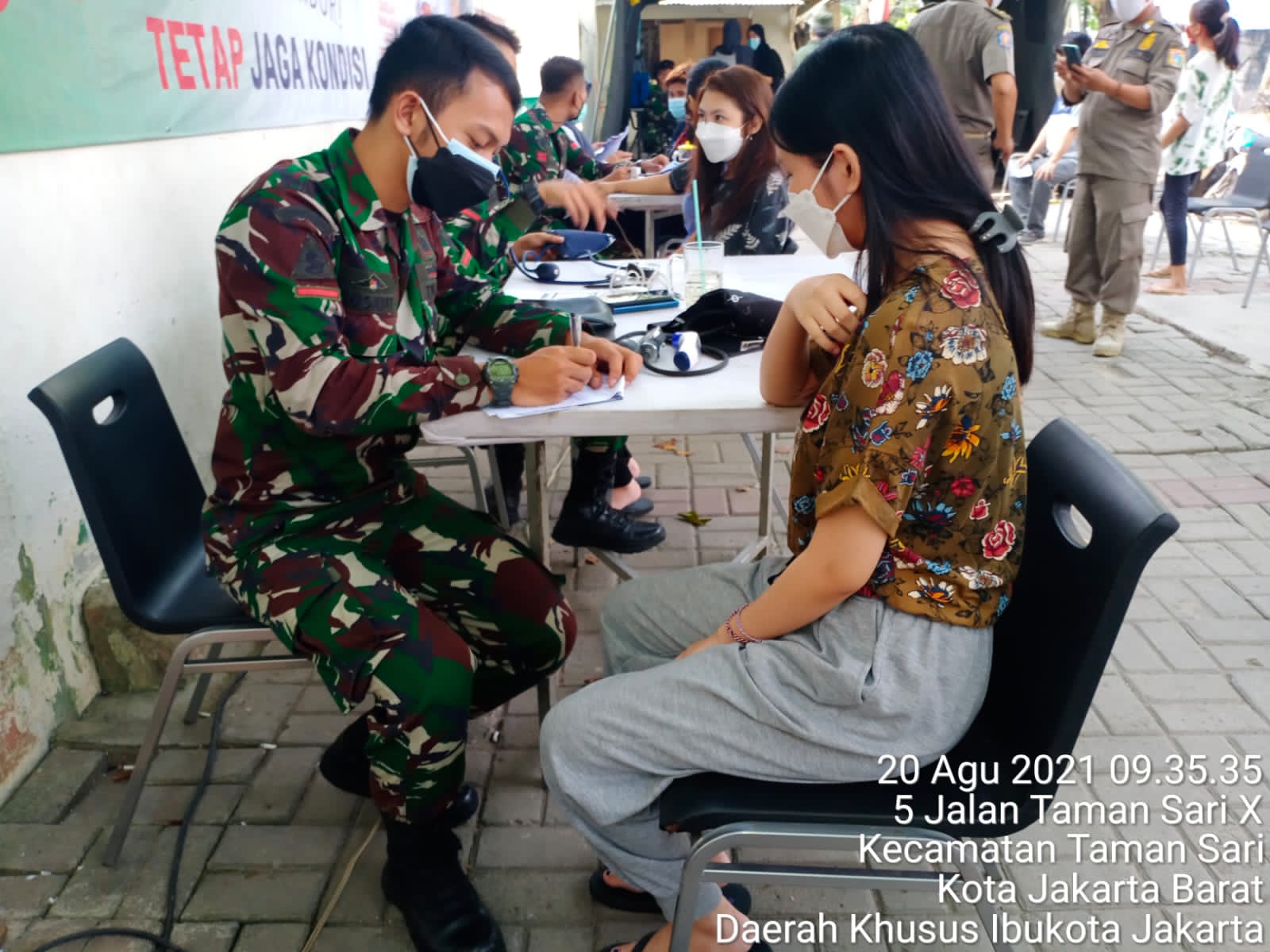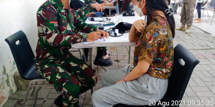 Jakarta Barat – Suarainvestigasi. com – Kegiatan Serbuan Vaksinasi TNI yang dilaksanakan Koramil 01/Tamansari Kodim 0503/Jakarta Barat di halaman parkir stadion sepak bola Tamansari Jalan Mangga Besar VI, Rt.08/01, Kel. Tamansari, Kec. Tamansari Jakarta Barat sebanyak 300 orang yang tervaksin.