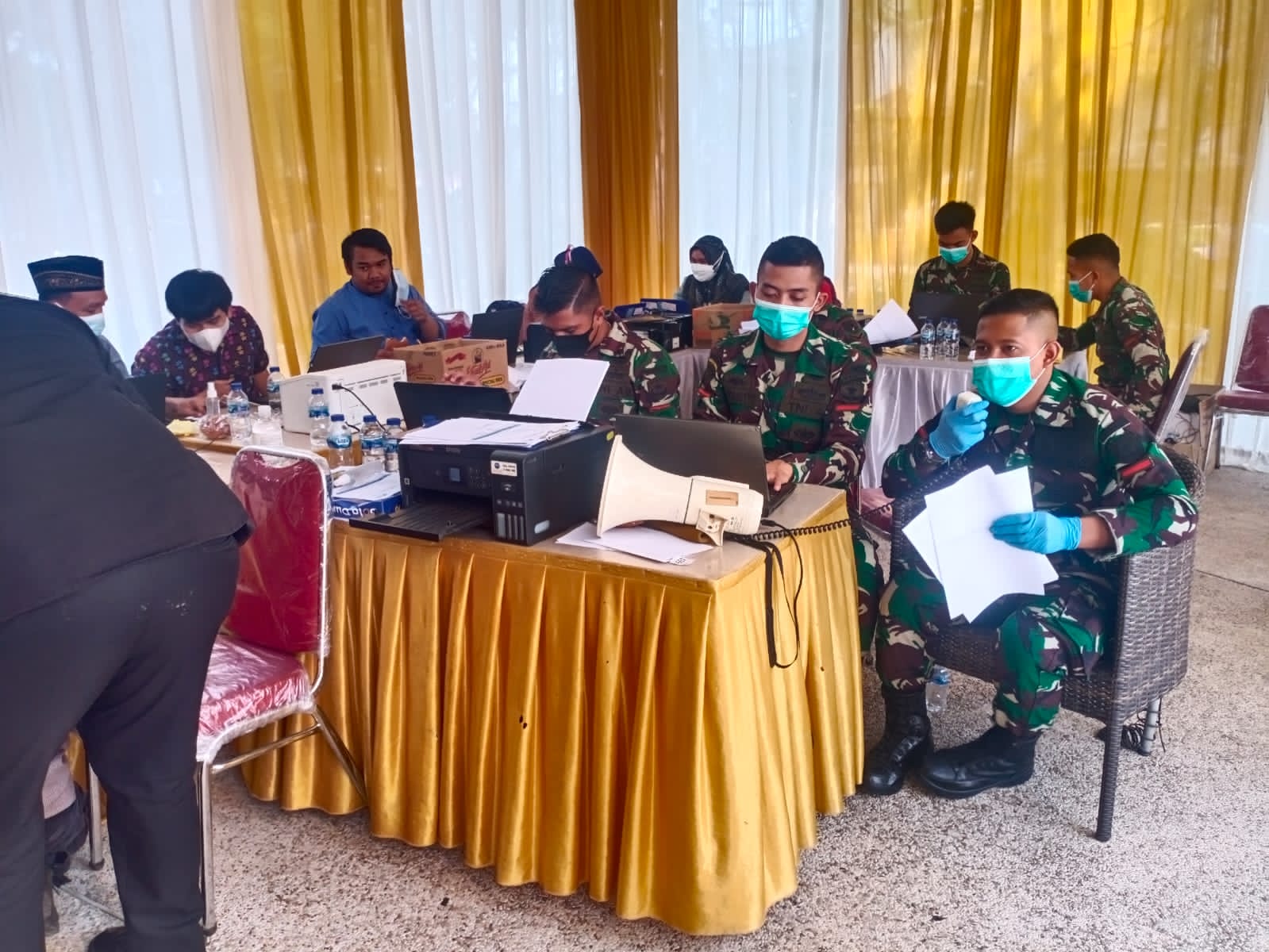 Serbuan Vaksinasi TNI yang dilaksanakan Koramil 04/Ck mengambil tempat di Perumahan Golf Lake Club Hause, Jalan Auter Ring Ruid, Rt. 04/018, Kel. Cengkareng Timur, Kec. Cengkareng kota Administrasi Jakarta Barat. Jum”at, 30 Juli 2021.