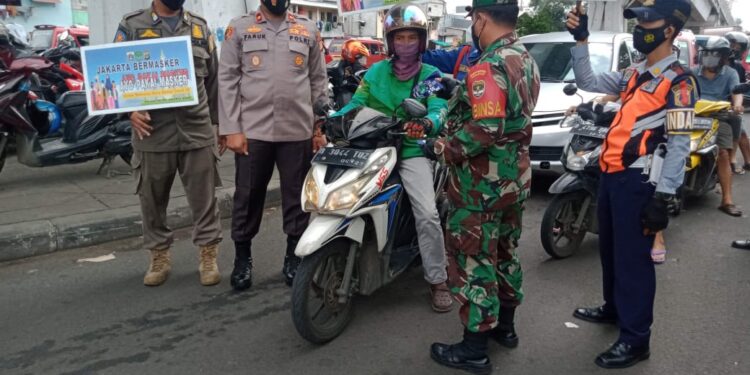 Kegiatan sosialisasi PPKM dan pembagian masker dipimpin langsung Kapolsek Tambora Kompol M.Faruk Rozi dengan menurunkan 23 petugas gabungan dari Koramil 02/TB, Polsek Tambora, Pol PP, Damkar dan Dishub