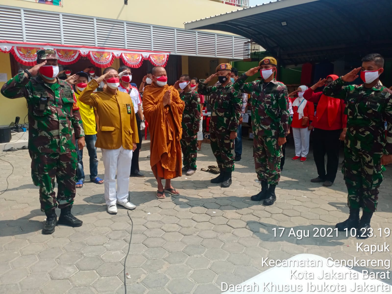 Jakarta Barat – Suarainvestigasi.com – Kegiatan serbuan Vaksinasi Koramil 04/Cengkareng di halaman Vihara Hemadhiro Mettavati turut melaksanakan upacara dalam dirgahayu Republik Indonesia ke-76.