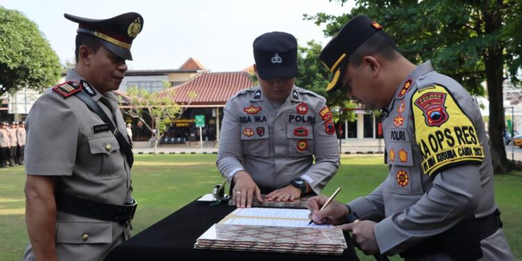 KENDAL – Suarainvestigasi.com – Kapolres Kendal AKBP Jamal Alam H SH SIK MSi pimpin upacara serah terima jabatan Kasat Binmas, Kasi Propqm dan Kapolsek di halaman Mapolres Kendal, Senin (29/05/2023).