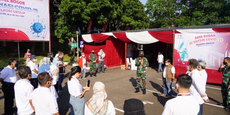 JAKARTA – Suarainvestigasi.com – Untuk menekan penyebaran dan penularan Covid – 19 seluruh wilayah di Indonesia termasuk Kota Bogor, Danrem 061/Sk Brigjen TNI Achmad Fauzi S.I.P.,M.M. terus melakukan serbuan vaksinasi di beberapa titik di wilayah Korem 061/Sk, bahkan Danrem juga menggandeng beberapa perusahaan besar untuk melakukan kegiatan percepatan vaksinasi Covid-19 dengan menggandeng GraPARI Telkomsel Witel Bogor.