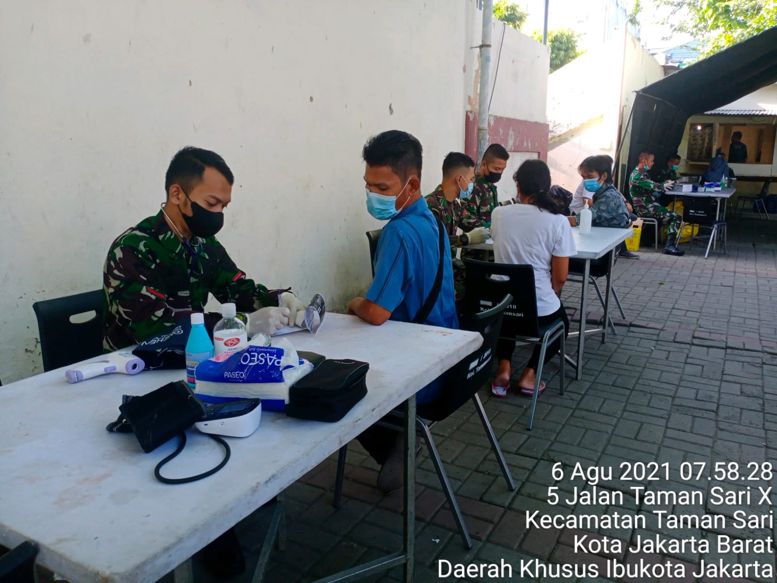 Jakarta Barat – Suarainvestigasi.com – Serbuan Vaksinasi di wilayah Kodim 0503/ Jakarta Barat setiap harinya gencar di laksanakan dalam rangka membantu Program Vaksinasi Nasional. Seperti yang dilakukan oleh Koramil 01/Tamansari hari Jumat (06/8/2021), yang melaksanakan serbuan vaksin bertempat di halaman parkir Stadion Sepak Bola Tamansari, Jalan Mangga Besar VI Utara, RT. 008/01, Kel. Tamansari Kec. Taman Sari, Kota Administrasi Jakarta Barat.